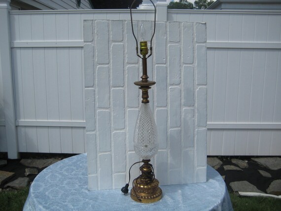 Vintage Diamond Pointe Glass Lamp With Brass Accents 38 Etsy Canada
